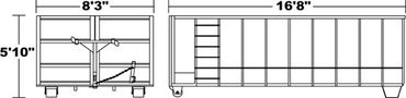 20 cy box is approximately 16 feet long, 8 feet wide and 6 feet tall with doors in the back for easy loading.