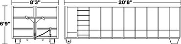 30 cy box is approximately 20 feet long, 8 feet wide and 7 feet tall with doors in the back for easy loading.